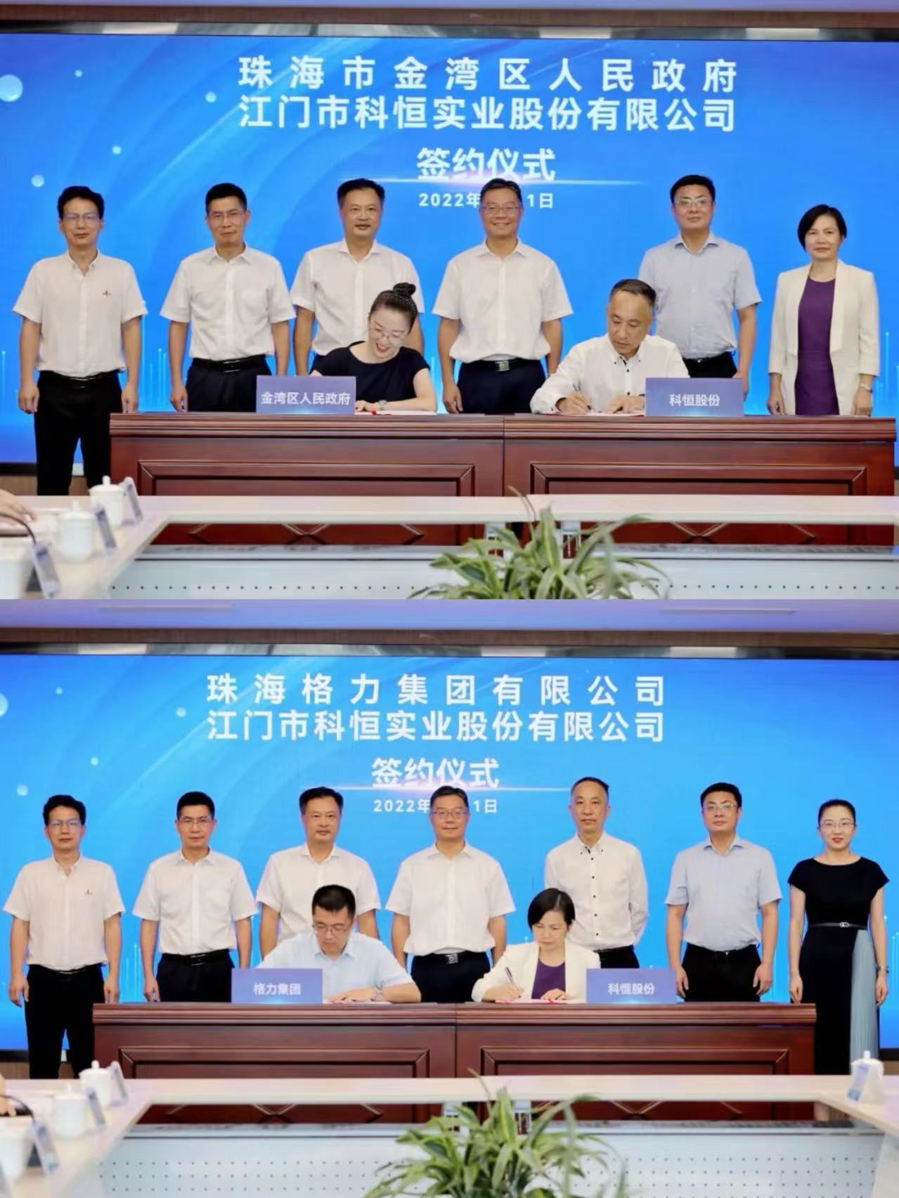 2022年7月,珠海市金灣區(qū)人民政府、珠海格力集團(tuán)與科恒股份簽訂合作協(xié)議,科恒新能源材料及裝備項(xiàng)目將落戶珠海金灣 。
